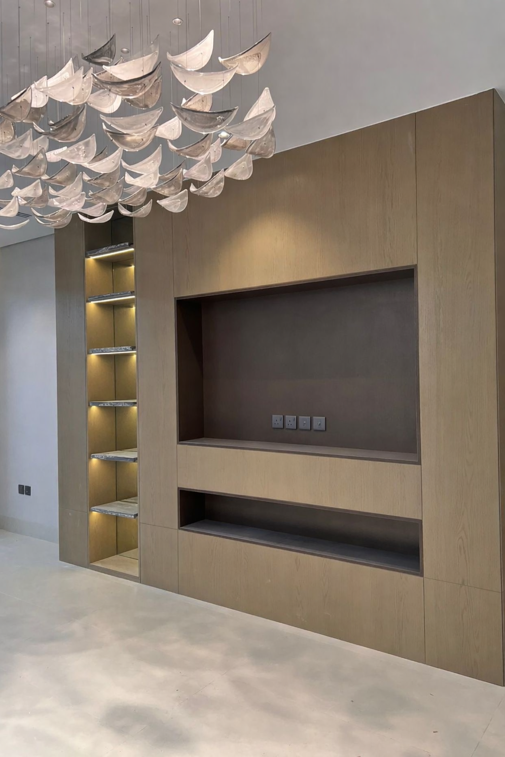 - تجليدات خشبية فاخرة تضيف طابعًا معماريًا راقٍ